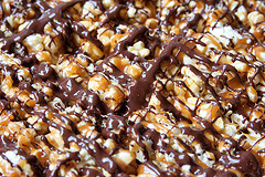 "Caramel Popcorn drizzled with chocolate" by EdwardKimkuk @flickr. Original photo sourced here: http://www.flickr.com/photos/woodwood/4835402465/